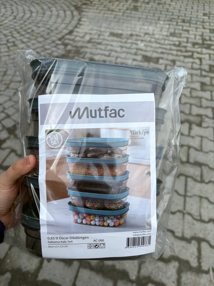 Mutfac 5 parça çok renkli, gri kapaklı gıda saklama kabı seti, yiyecekleri taze tutmak için uygundur.