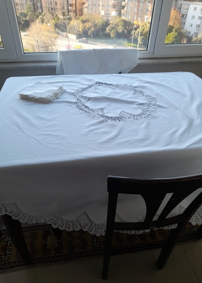 İngiliz keten kumaşı üzerine dantel yapıldı ceyizlik hiç kullanılmamış yepyeni bu fiyat kaçmaz