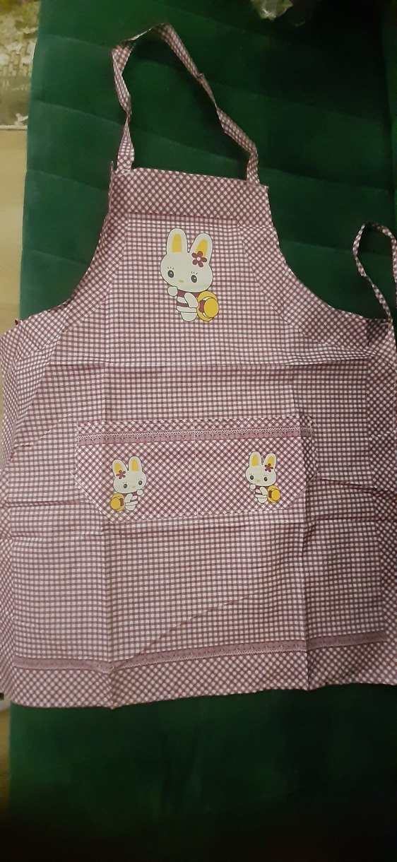 mutfak önlüğü, renkli nakışlı tavşan desenleri ve ön cep ile kullanışlıdır...incedir..