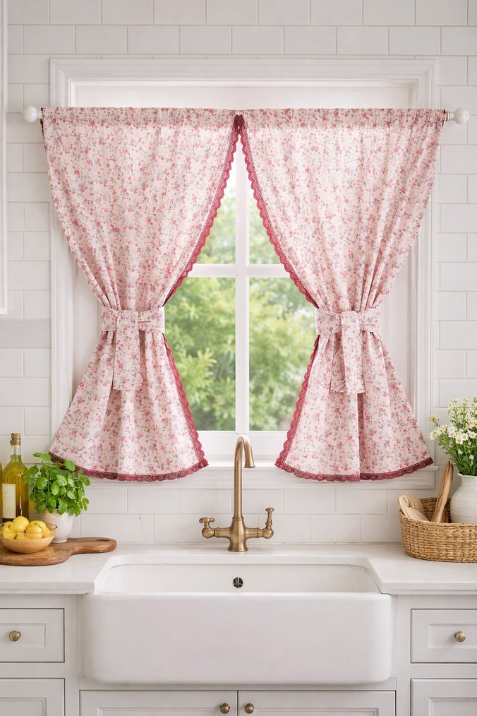 çiçek desenli kenarları dantelli şık mutfak perdesi.. en 98 boy 86 cm dir . yeni üründür..