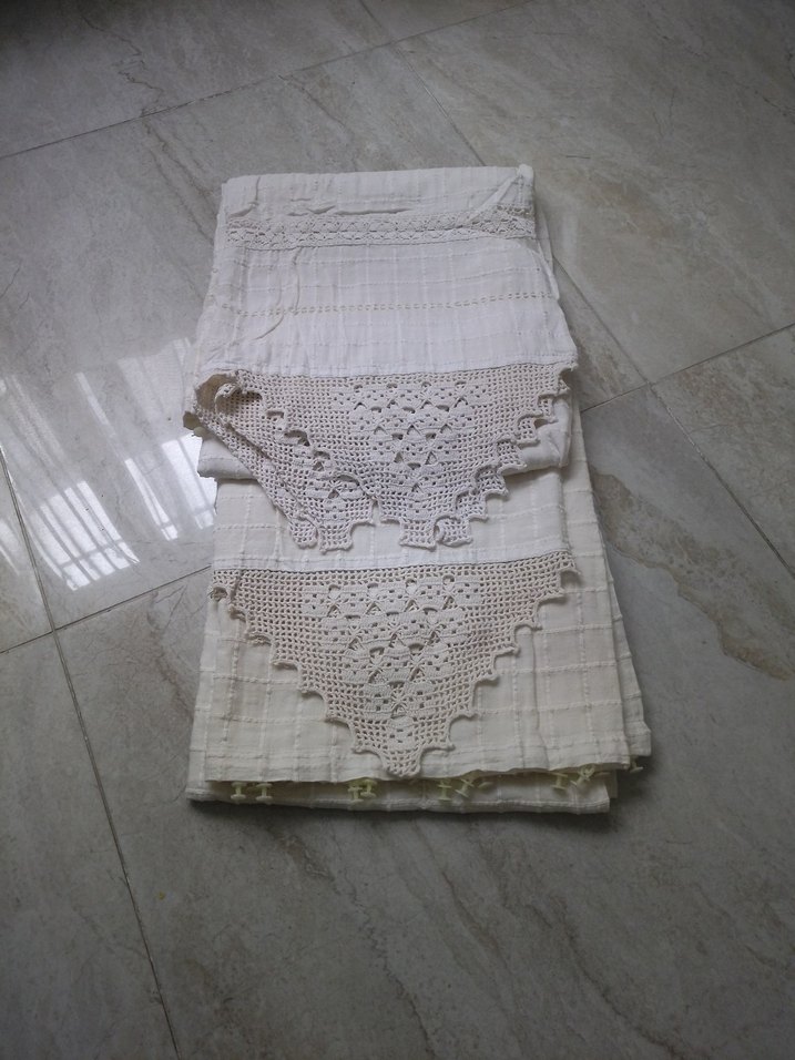 İki parça mutfak Perdesi Bej Renk uç kısımları dantel detaylı el emeği
