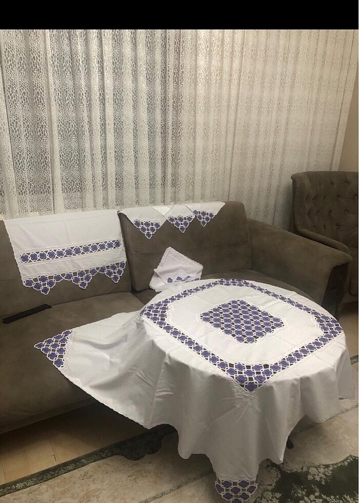 Bir adet kare masa örtüsü bir adet buzdolabı örtüsü 18 adet peçete mevcuttur üç rengi vardır.