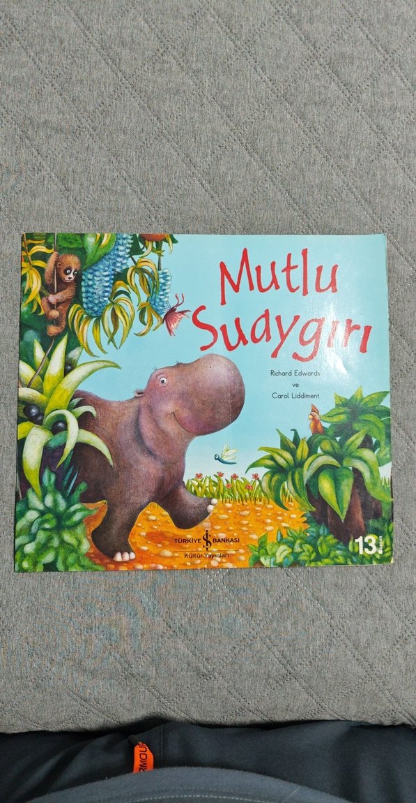 "Mutlu Suaygırı" çocuk kitabı, renkli çizimleri ve neşeli su aygırı karakteriyle çocuklara canlı bir hikaye sunuyor.