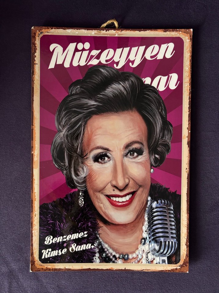 Müzeyyen'in yer aldığı, 'Benzemez Kimse Sana' ifadesiyle dikkat çeken vintage tarzda tablo
