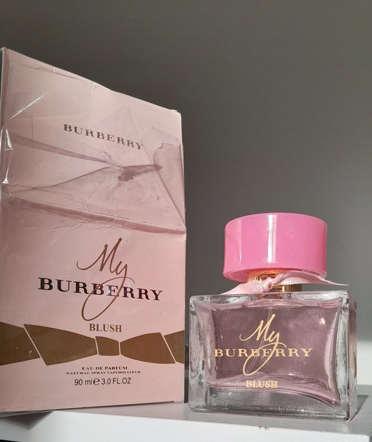 My Burberry Blush, 90 ml kadın parfümü. Pembe temalı kutu ve şişede, altın yazılı detaylar bulunur. My Burberry Blush ikonik serinin meyveli çiçeksi bir versiyonu. Üst Notalar: Tatlı Nar ve Limon. Orta Notalar: Gül yaprağı ve Taze Elma. Alt Notalar: Yasemin ve Morsalkım.