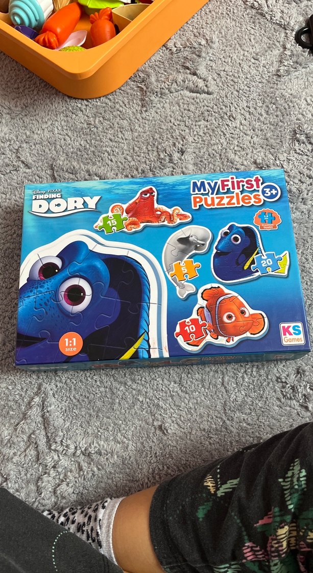 My First Finding Dory temalı, 3 yaş ve üzeri çocuklar için 10, 15 ve 20 parçalı renkli mavi puzzle seti.
