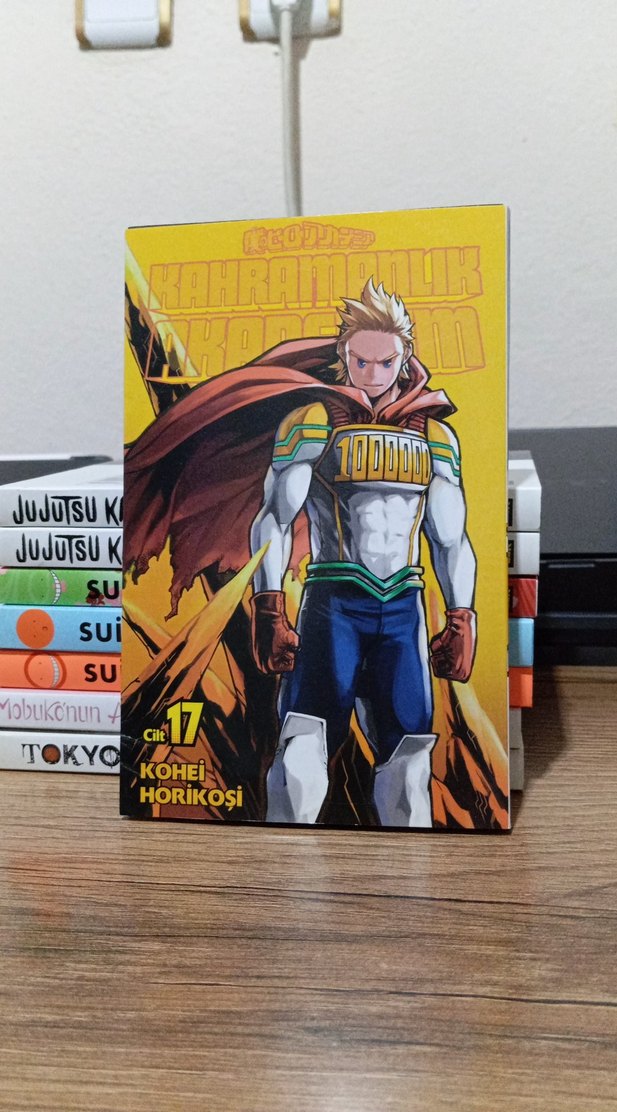 Kohei Horikosi'nin My Hero Academia serisinin 17. cildi, dinamik kahramanlık sahneleri ve detaylı çizimlerle dolu.