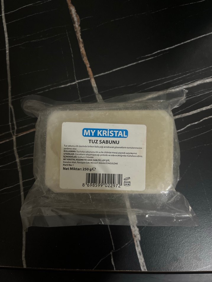 MY KRİSTAL tuz sabunu, tuz içeriği ile doğal temizlik sağlar. 250 gramlık pratik bir sabun barındırır.
