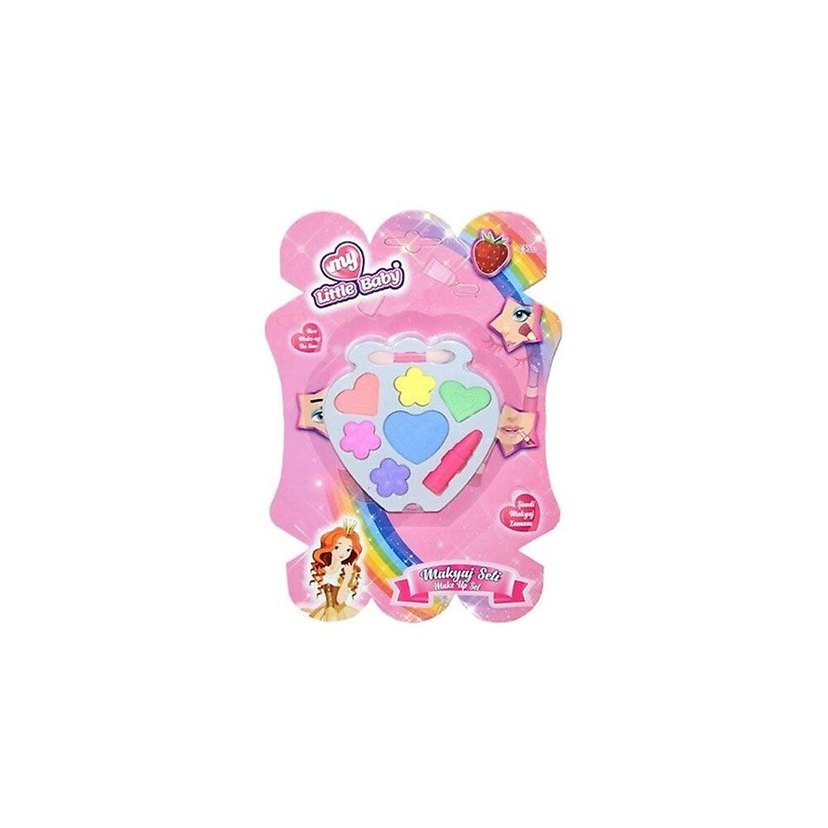 Kalp, çiçek ve yıldız şekilli renkli paletler ve aplikatörler içeren "Little Baby" markalı makyaj seti.