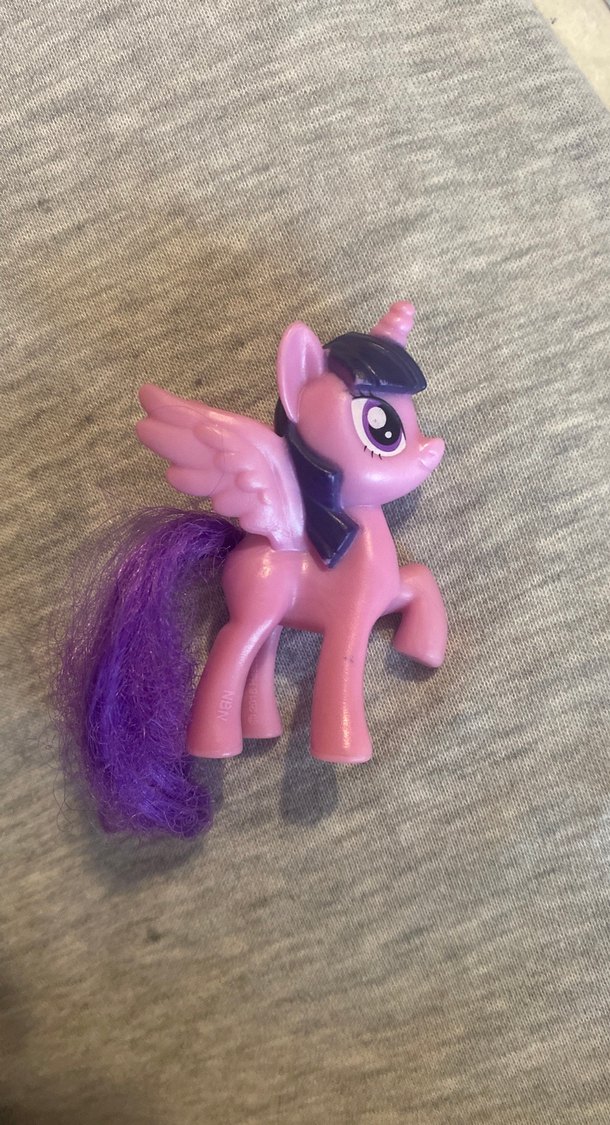 Mor kanatlı ve boynuzlu unicorn figürü, koyu mor yele ve kuyruğa sahiptir. Oyun veya koleksiyon için uygundur.