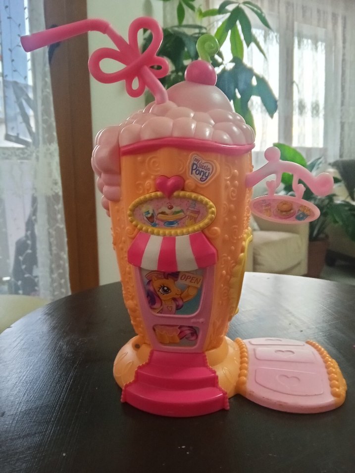 Pembe detayları ve oyuncu tasarımıyla renkli My Little Pony oyuncak dükkanı, fiyonk şeklinde pipet ve küçük asılı tabela içerir. my little pony eski jenerasyon ürünü, benim elimdeki üründe kusurlar ve eksik aksesuarlar var fotoğraflarda kusur benzeri her şey detaylica gözüküyor #vintage