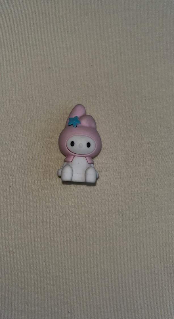 Küçük mavi yıldız detaylı, pastel pembe renkte sevimli ve sade tasarımlı silgi