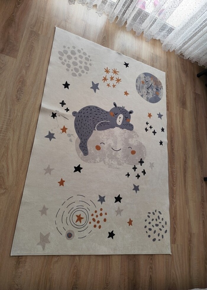 1.73 e 1.16 cm çocuk odasi Makinede yıkanabilir Resimdeki ufak leke dışında bir kusuru yoktur. 3 aydır kullanıyorum