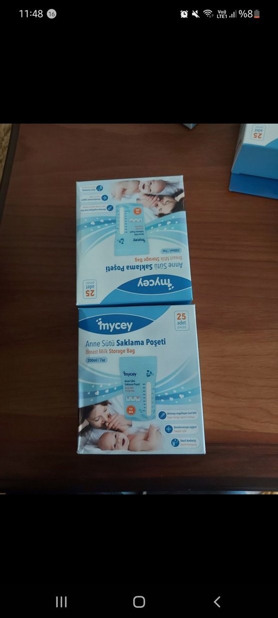 Mycey anne sütü saklama poşetleri 2 kutu toplam 50 adet, 200 ml kapasite ve güvenli kilit sistemiyle mavi renkte sunulmaktadır.