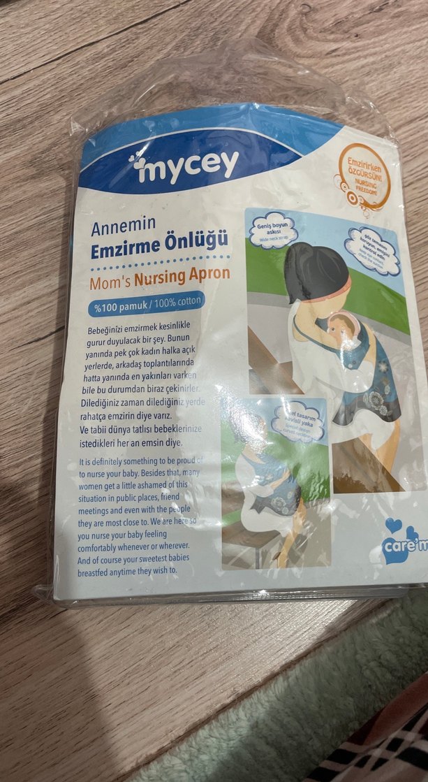 Mycey markalı %100 pamuk emzirme önlüğü, rahatlık ve gizlilik sağlar. Baskılı desenli, midi boy ve vücuda oturan yapıda.