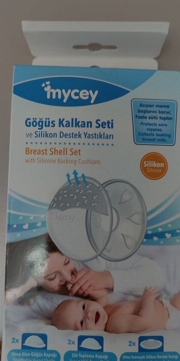 Mycey Göğüs Kalkan Seti, silikon destek yastıkları ile hassas meme uçlarını korur, fazla sütü toplar ve konfor sağlar. hiç kullanılmadı