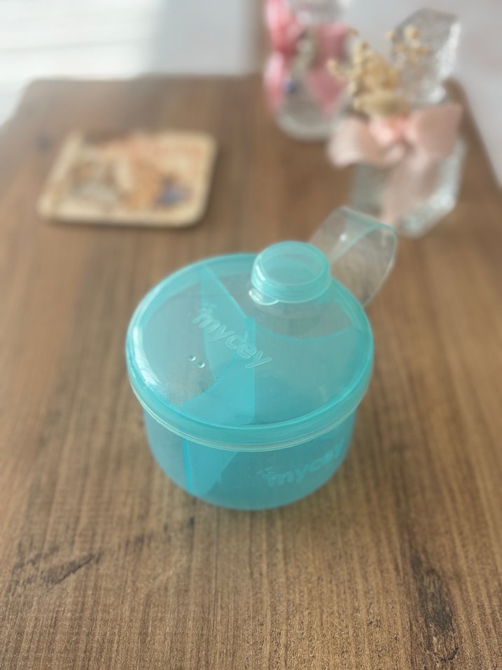 Yumuşak pastel tonlu turkuaz renkte, kolay kullanımlı toz mama saklama ve taşıma kabıdır. Yuvarlak ve şeffaf tasarıma sahip, güvenli kapaklı.