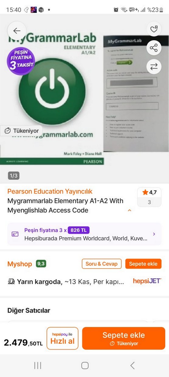 Mygrammarlab Elementary A1-A2 seviyesi için Myenglishlab erişim kodlu, soru ve cevap içeren kitap.
