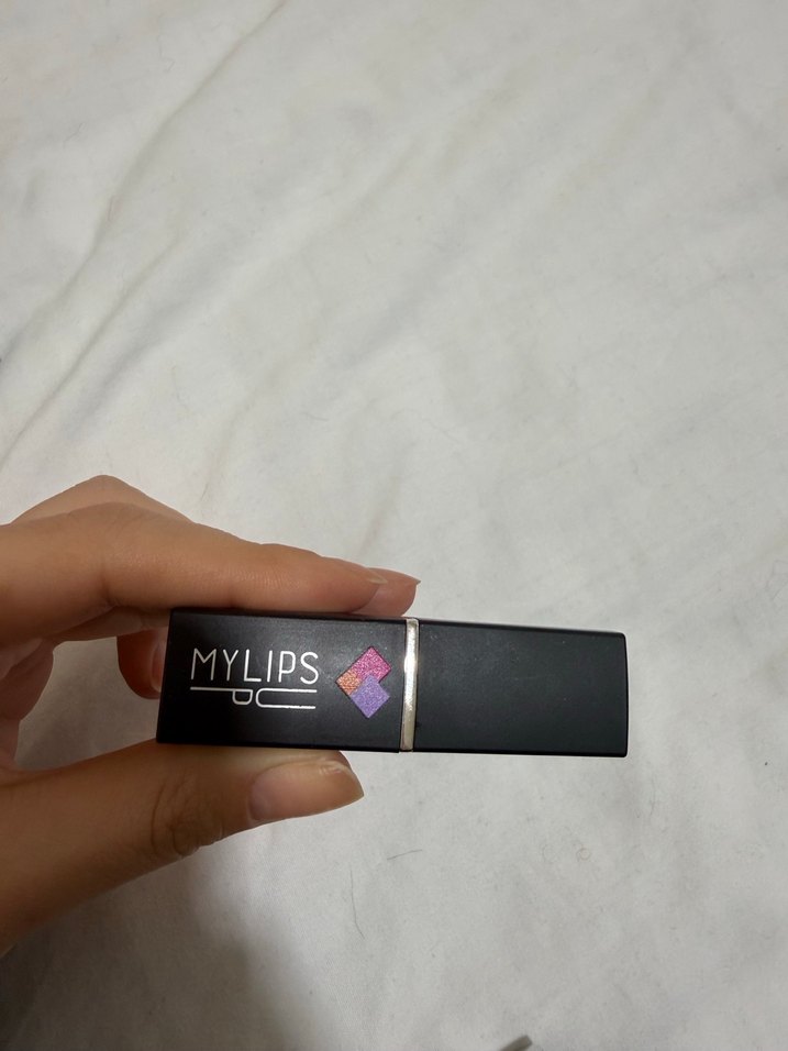 MYLIPS markasına ait mat ruj, şık tasarımı ve koyu renk tonu ile dikkat çekiyor.
