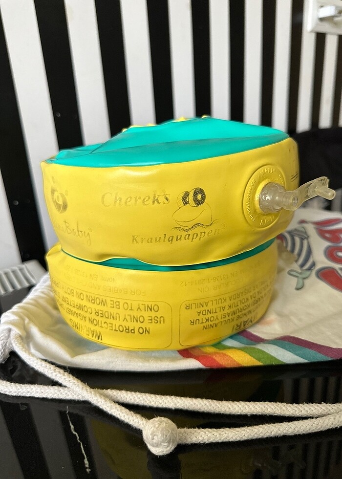 Yüzme öğrendiği için satıyorum. Şişme yerinden bir kes tamir kitiyle tamir ettik kullanımda hiç bir sorun yoktur. O yuzden fiyatı uygun tuttuk.