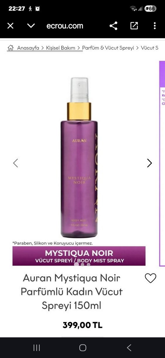 MYSTIQUA NOIR BODY MIST SPRAY Kadın Deodorantı