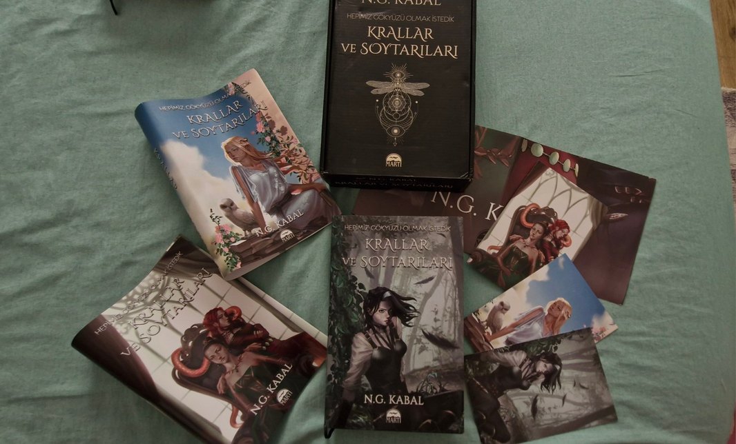 N.G. Kabal imzalı 'Krallar ve Soytarıları' adlı fantastik temalı roman seti, farklı kapak görselleriyle birden fazla kitaptan oluşuyor. 3 Ayrı kapak seçeneği ve karakter kartları mevcut. Ayracı ve posteri kutunun içinde mevcut. Bir kez okundu bir kaç işaretli sayfası mevcut. Hasarsız ve ciltli.