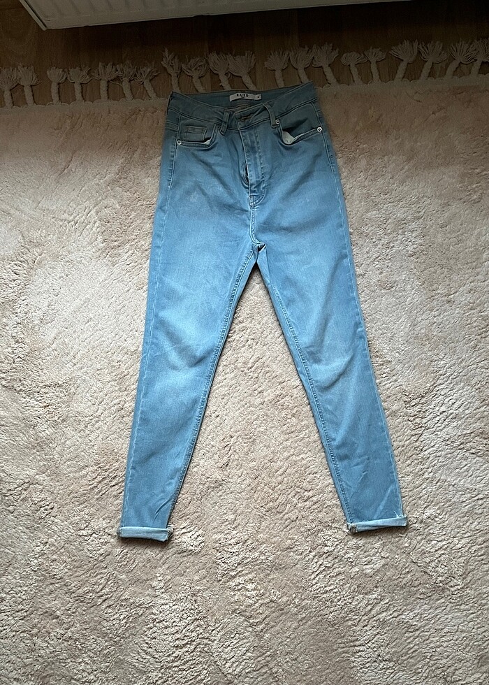 Kaliteli bir kumaşı var. Yepyeni. Marka Temsili. 34-36 bedenlerede hoş duracaktır. Ölçüleri Boy Uzunluğu: 96 Paçası açılmış hali: 101 cm Paça Genişliği: 12 Bel Genişliği: 32