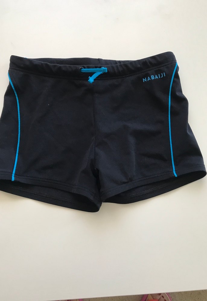NABAIJI erkek çocuk lacivert yüzme şortu, bağcıklı bel ve ince mavi şerit detaylara sahip rahat kesim. 12/13 yaş