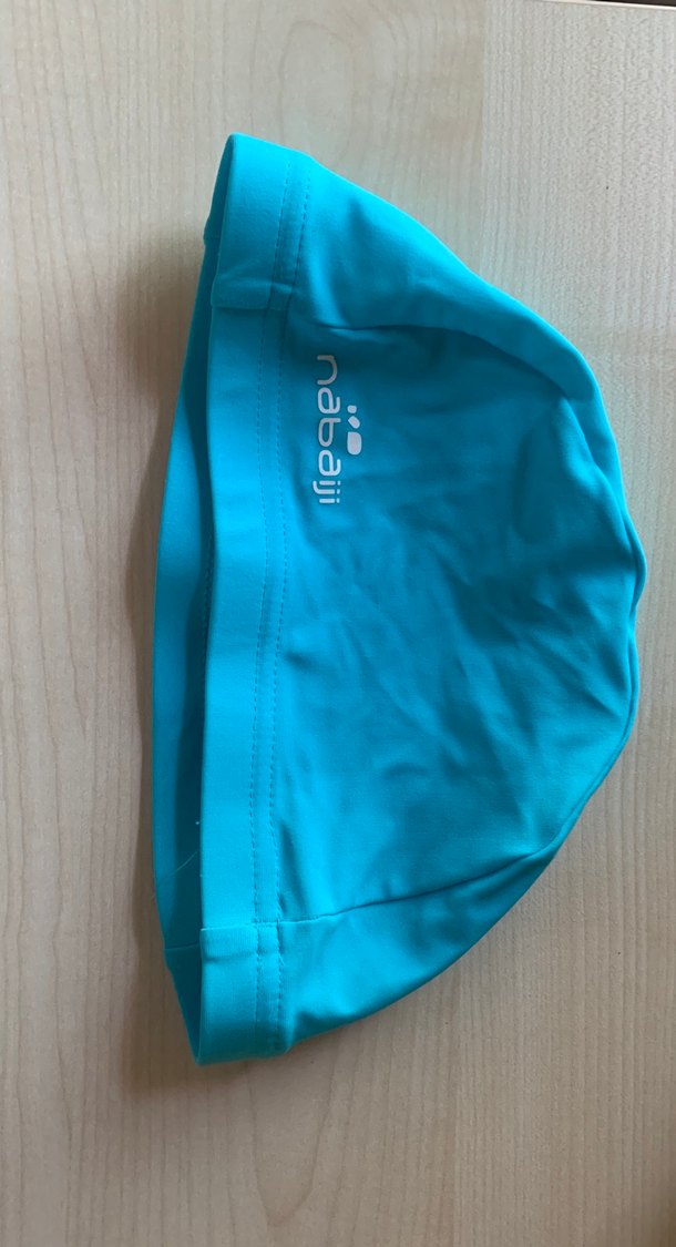 Nabaiji markalı mavi çocuk yüzme bonesi, rahat kullanım için esnek ve yumuşak kumaştan üretilmiştir. ♂️