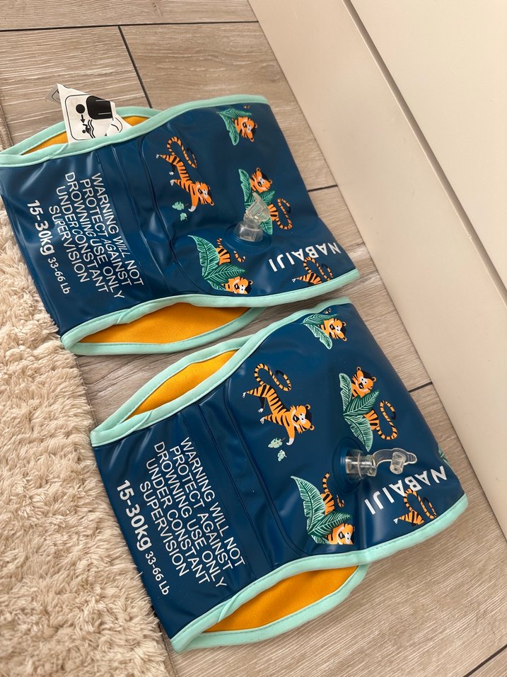 Baskılı kaplan desenli, mavi renkte çocuk kolluk.15-30 kg arası çocuklar için uygun. Bohem ve retro tarzda. Hiç kullanılmadı