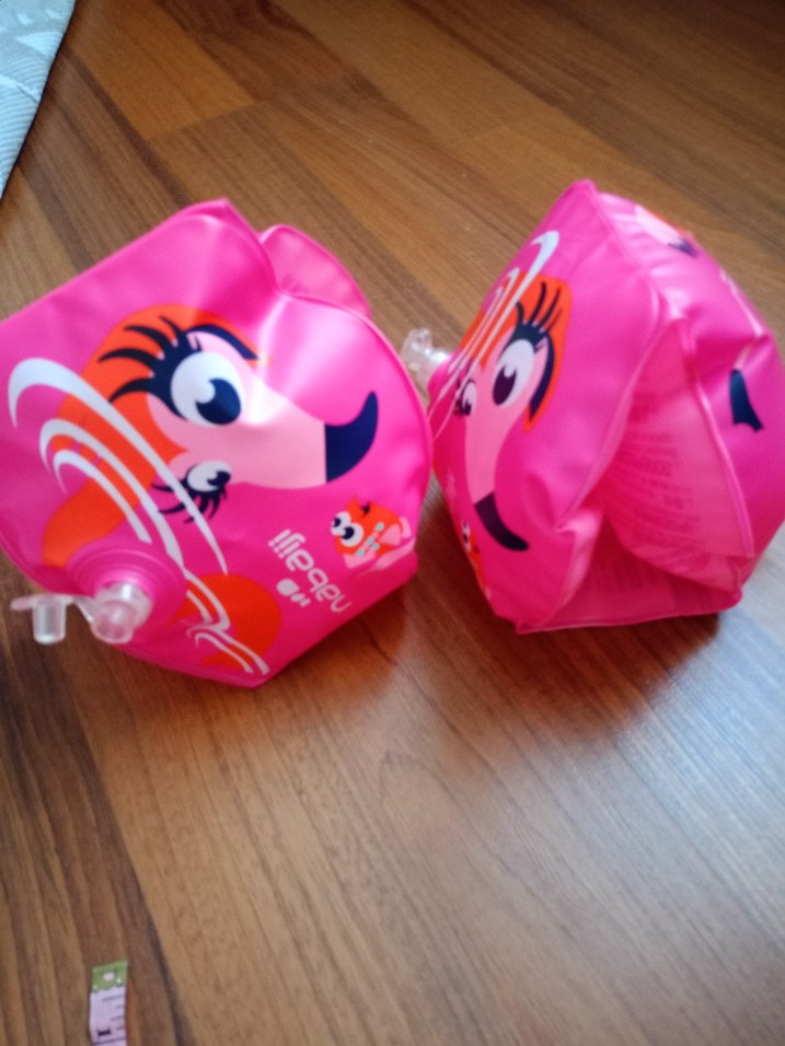Rengarenk pembe çocuk kollukları, eğlenceli hayvan desenli, deniz ve havuzda güvenli yüzme sağlar. ️