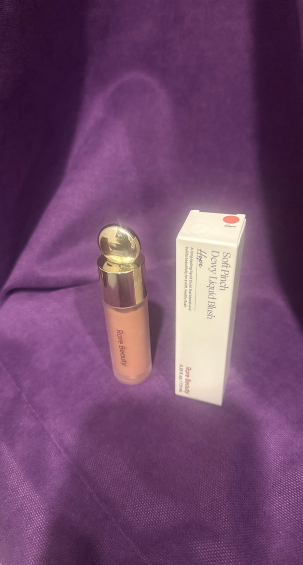 Rare Beauty Soft Pinch Dewy Liquid Blush, pastel bej renginde, hafif yapılı ve doğal ışıltılı bir görünüm sağlar.