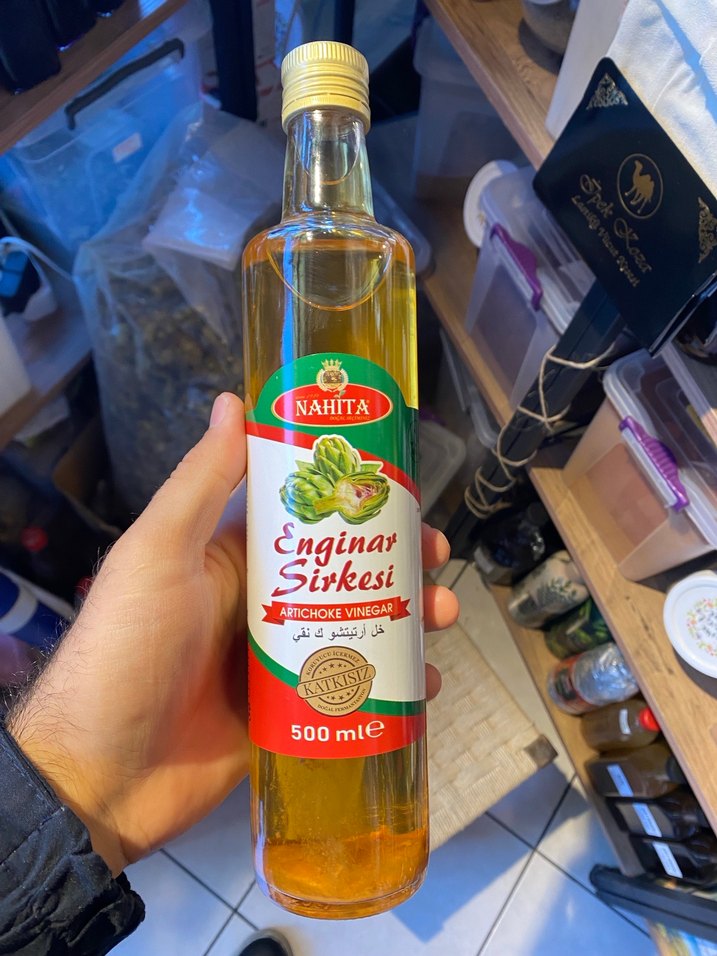 Nahita markasına ait 500 ml cam şişede enginar sirkesi, doğal ve geleneksel lezzet sunar.