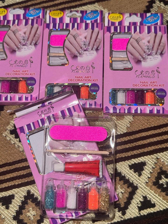 1 adet fiyatıdırRenkli sim tozları, pembe tırnak törpüsü ve oje içeren tırnak süsleme seti. Yaratıcı tasarımlar için uygun.