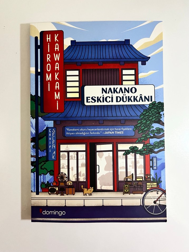 Hiromi Kawakami'nin Nakano Eskici Dükkanı adlı romanı, eski bir dükkanda geçen nostaljik bir hikayeyi anlatıyor. Kapakta detaylı çizimlerle geleneksel bir dükkan yer alıyor.