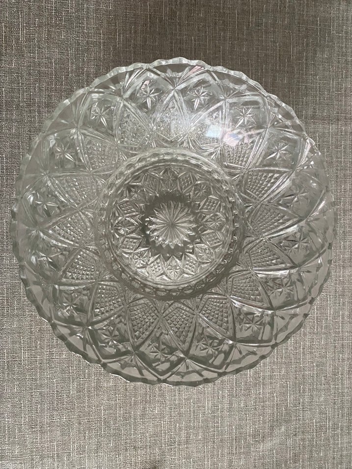 Nakış desenli, geleneksel tarzda, bej ve gri tonlarında şeffaf cam kase. Sofranıza zarafet katar. ️