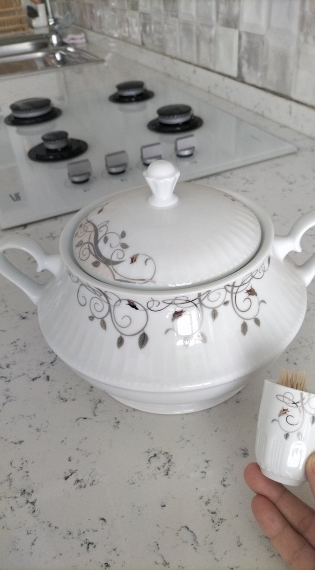 Nakış Desenli Beyaz Porselen büyük boy çorba tenceresi
