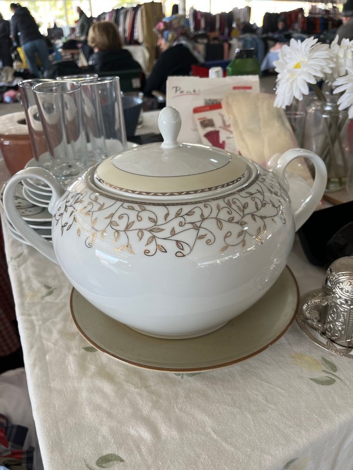 Nakış desenli beyaz seramik soupier (Çorbalık), klasik kulp ve kapak tasarımına sahiptir. Kütahya Porselen markadır.