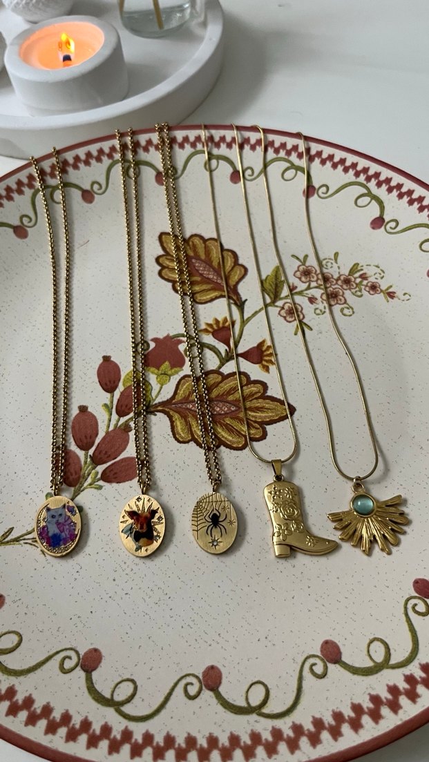 Nakış desenli, boncuklu altın renkli midi kolyeler, vintage bohem tarzıyla günlük kullanım için uygundur. ✨