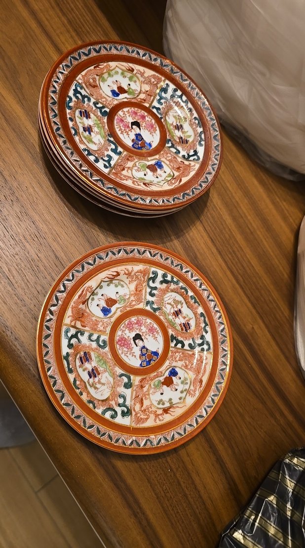 Nakış desenli, çok renkli ve koyu tonlarda geleneksel motiflere sahip tabak seti. Detaylı tasarımı ile öne çıkar. ️hic kullanılmadi