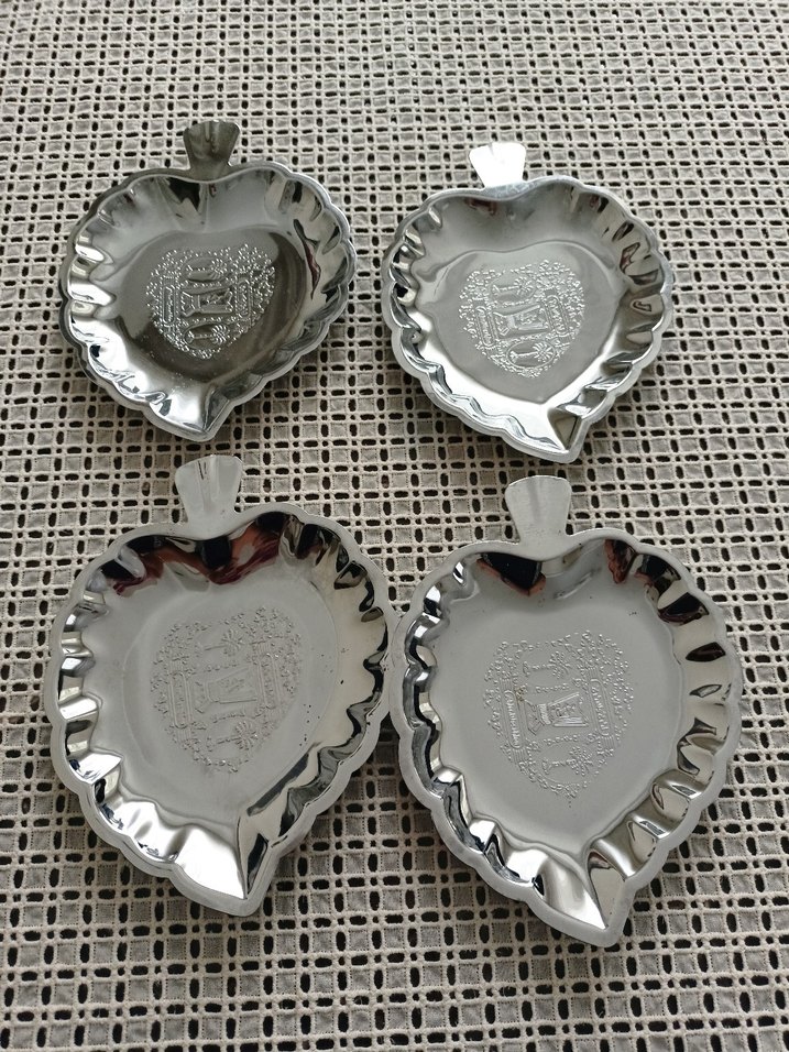 Nakış desenli, parlak altın renginde kalp şeklinde tabak seti. Dekoratif kenarlarıyla servis veya sunum için uygundur. ️ sorunsuz 4 adet 17 x 13 cm