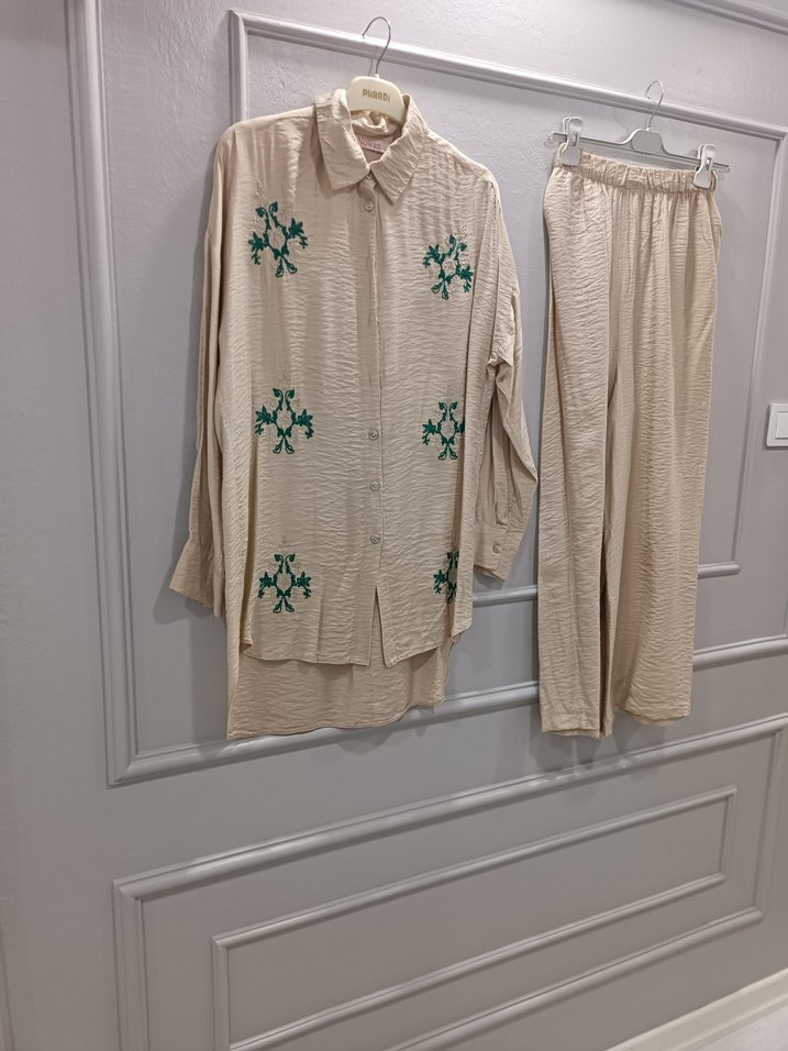 Nakış Detaylı Bej Kadın Takım
