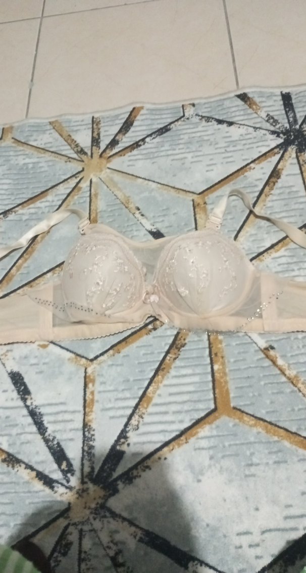 Nakışlı, açık bej renkte, vintage bohem tarzında ve normal uzunlukta askıları olan sütyen. ✨