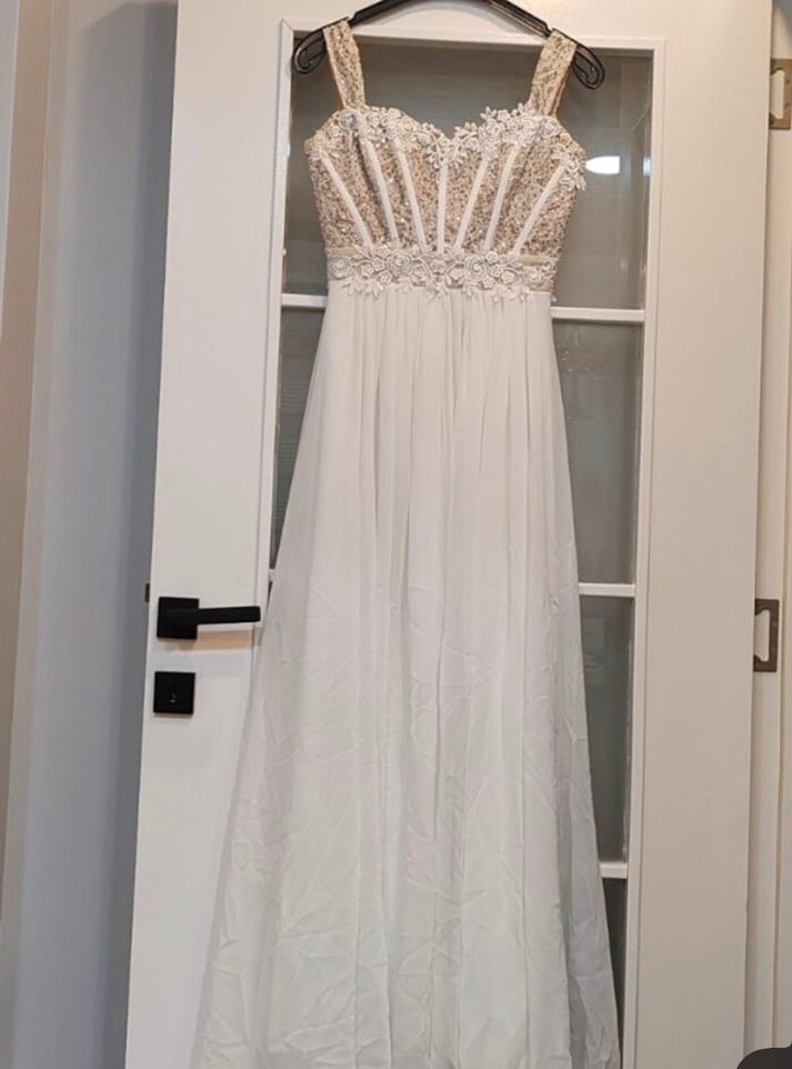 Nakış Detaylı Beyaz Uzun Abiye Elbise