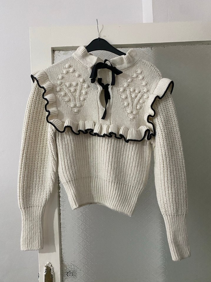 Nakış Detaylı Beyaz Yüksek Yakalı Kadın Kazak