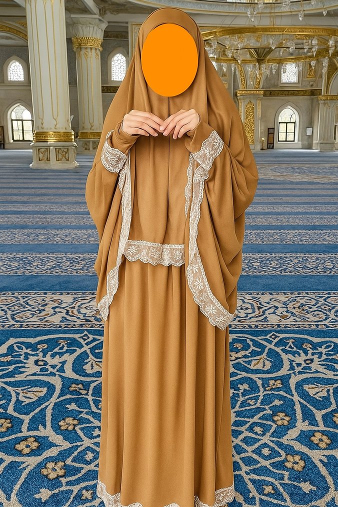 Nakış işlemeli, camel renkli, uzun ve bol kesim elbise. Drapeli uzun kollu, straplez yaka ve yumuşak sentetik kumaştan üretilmiştir. Bohem tarzına uygundur.