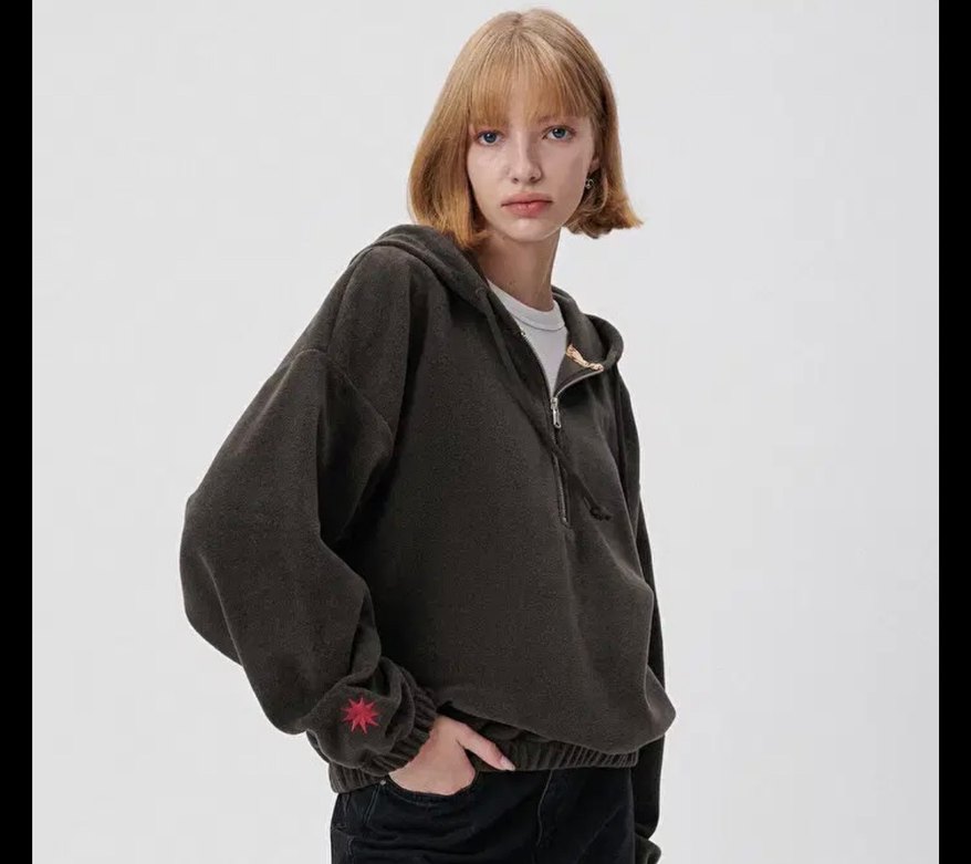yüksek yakalı ve uzun kollu, fermuarlı ön ve nakış detaylı bol kesim sweatshirt. Günlük kullanım için rahat, yumuşak kumaş. Polarli