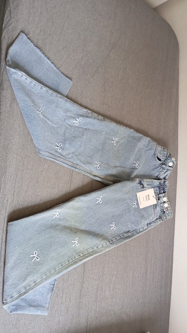 Nakış detaylı, düğmeli, bol kesim gri kot pantolon. Günlük rahat sokak stili için uygundur.