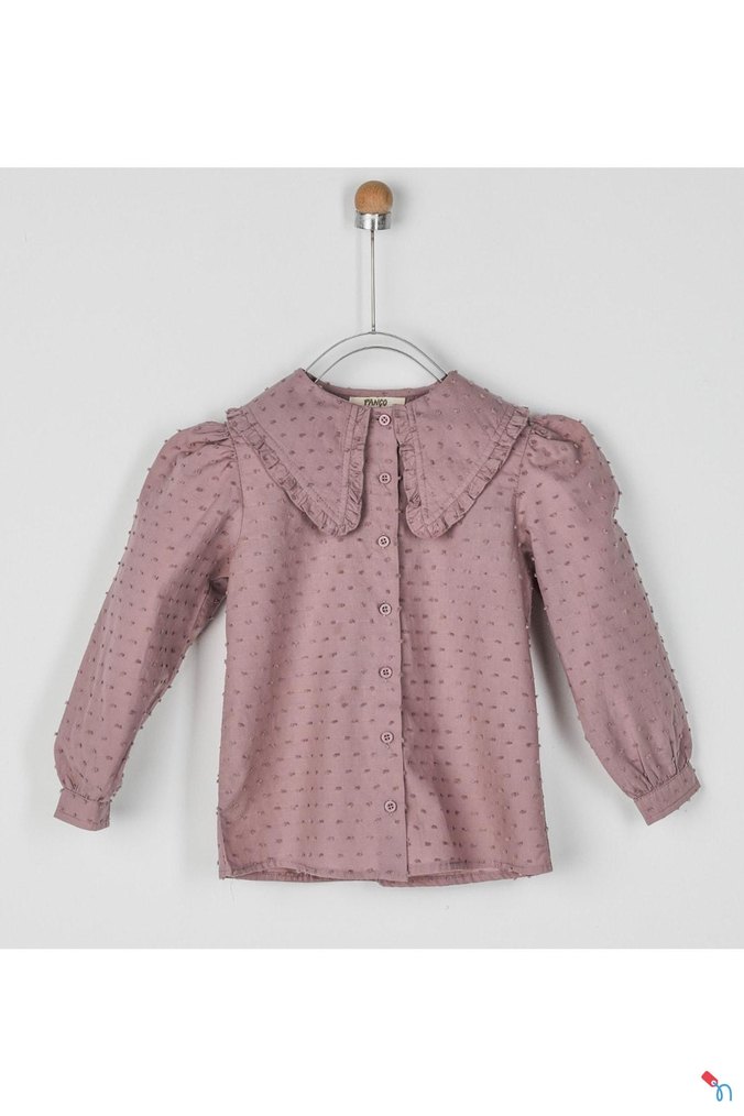 Nakış Detaylı Lila Bej Kız Çocuk Gömlek