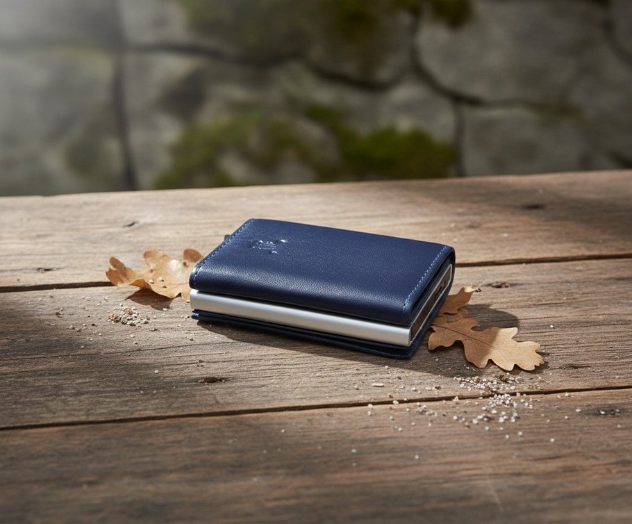 lacivert renkte, nakış detaylı erkek cüzdan. Modern klasik tarzı ve şık görünümüyle iş ortamlarına uygundur.